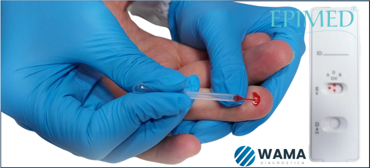 Teste rápido imunocromatográfico para determinação de grupo A, B e fator Rh – Wama